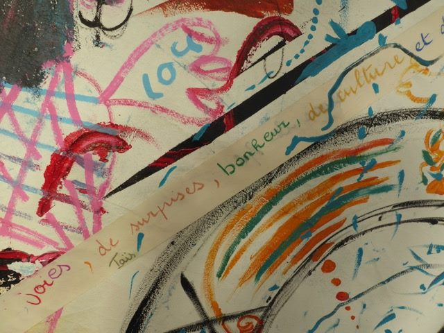 écriture, lecture, collage, peinture, création d’objets poétiques, théâtre, mouvement dansé...
